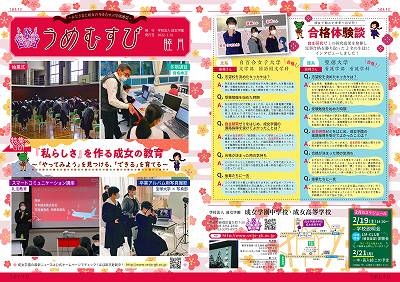 学園通信「うめむすび」。今号では成女学園の独自教育である「表現教育プログラム」の一年間の成果をご紹介します!アクト、エッセイ、トーク、コーラス、ダンス、フォト、ボイス、それぞれどのような取り組みを行ってきたのか、また、一…