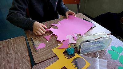 保育園や幼稚園の壁面飾りを覚えていますか?どの園でも季節ごとに壁面が飾られていたと思います。そこで、先生になりきって壁面飾りを作りました! 今回のテーマは、『新学期』。生徒たちは、真ん中にメッセージ、周囲に春の植物と生き…