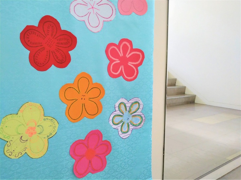 校内の踊り場には、生徒オリジナルのタペストリーが飾られています。校花である梅の花を、一人ひとりがそれぞれの形で咲かせました!桃の花ではないですが、明るくて賑やかな雰囲気が、ひなまつりにもぴったりだな~と感じました。お雛様…