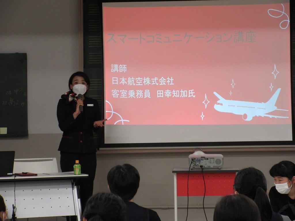 先日、日本航空の現役客室乗務員 田幸氏をお迎えして、「スマートコミュニケーション講座」を開催しました。 本校では礼法教育及びキャリア教育に力を入れており、客室乗務員として田幸氏が大切にしている接客時の心構えやコミュニケー…