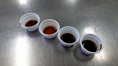 醤油の作り方の説明を聞いた後、こいくち醤油、うすくち醬油、再仕込み醤油、たまり醤油の4種類のテイスティングを行いました。