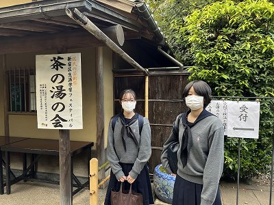 先日、講師の先生の主催のお茶会に参加いたしました。普段のお稽古とは違う雰囲気で、一般のお客様とご一緒して、ちょっと緊張した模様でした。でも、普段通りにお作法をすることができて、ほっと一安心でした。学校茶道とは違い、設えや見たことがないお道具もあり、ご一緒したお客様と一緒に拝見にも参加いたしました。この日見聞きしたことや感じたことが、全ていいお勉強になりました。今後のお稽古の励みにしていきましょう!