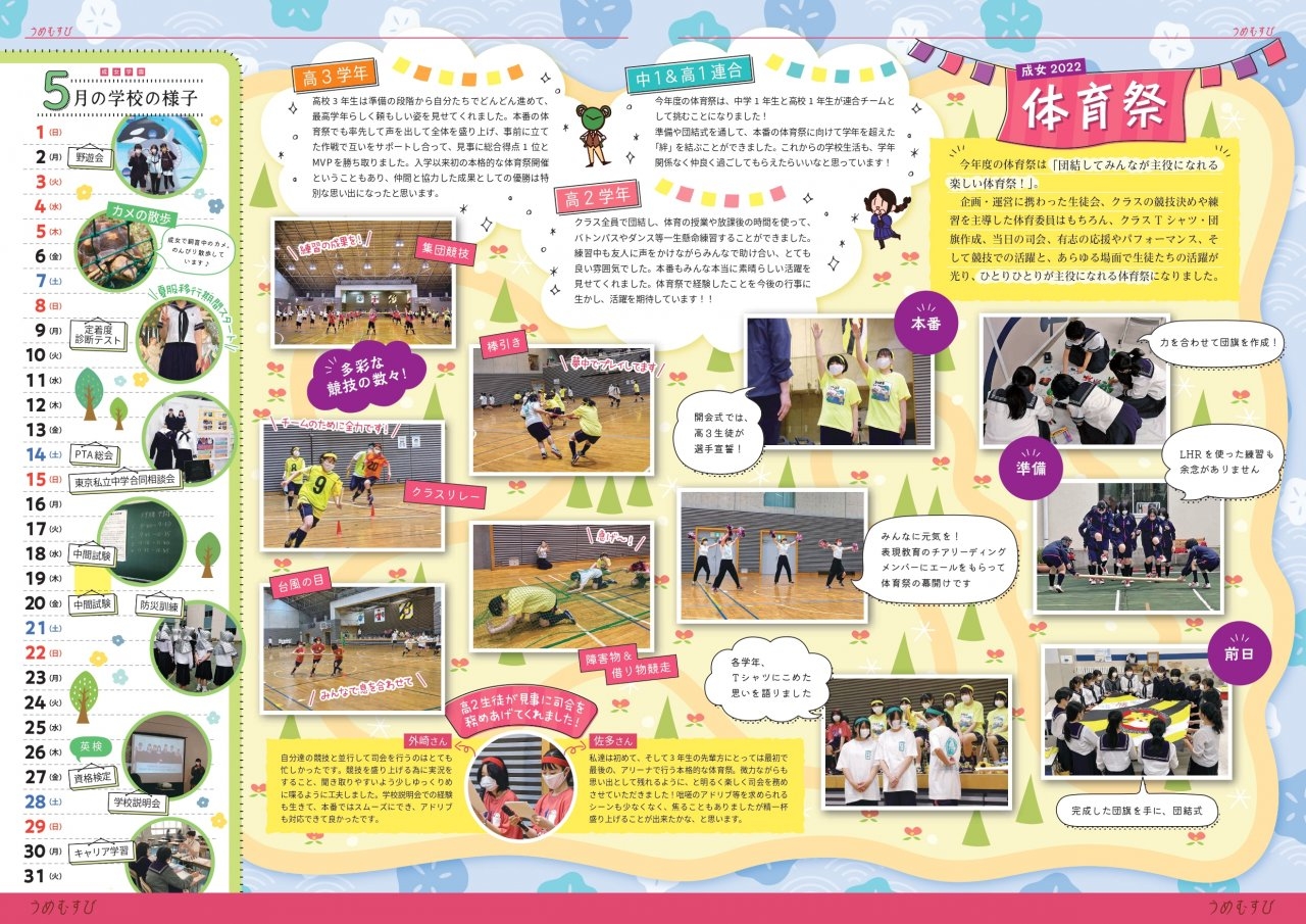 久々に外部の体育館を借りて盛大に開催された体育祭の特集号です。
