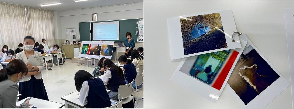 内容は、「フォト」の先生から説明を受けた写真の中から好きなものを選んで、「エッセイ」の先生の指導のもと写真にメッセージをつけ、「グローバル」の先生とメッセージを英文に直し発表するというもの。