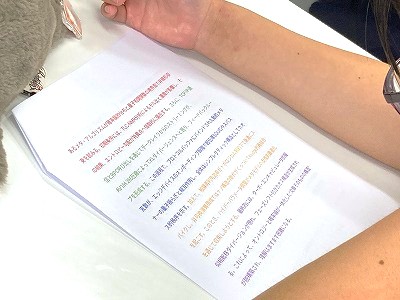 クラスメイトに協力してもらい、色づけされた文章を3分間見て記憶してもらったあと、穴埋めテストを実施!