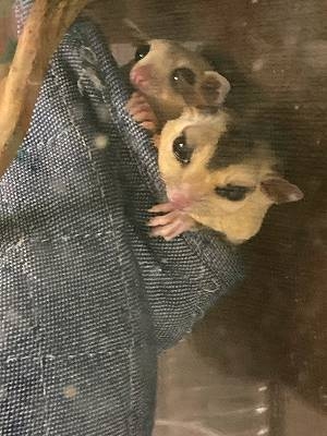 昼間は寝ているので、なかなか姿を見ることのできないフクロモモンガ。今日はめずらしく、二匹揃ってお顔をちょこんと出しているところに遭遇しました。起きてくるのが夕方以降なので、ご来校の際にはぜひお帰りの時にのぞいてみてくださいね!