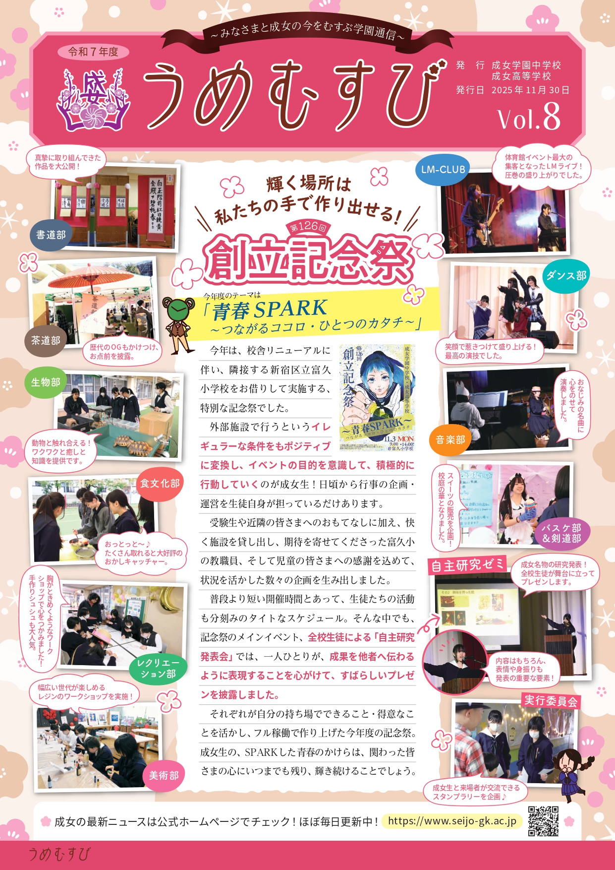 Vol.8は、創立記念祭、制服新オプション品誕生、リーダーシッププログラムを特集しています。