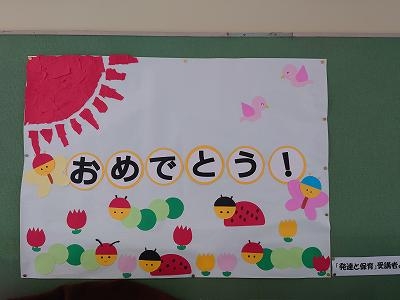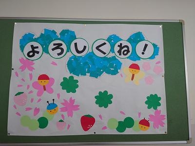 いつものように検温をして校舎に入ると、かわいい壁面飾りが出迎えてくれました。