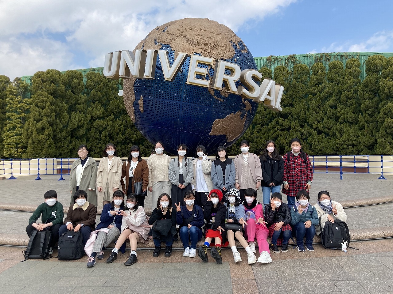 まずはシンボルの地球儀の前で集合写真をパシャリ!生徒たちはワクワクが止まらない様子で、足早に班別行動に移りました。コロナ禍で苦労が多かった3年生ですが、最後の修学旅行は思いっきり満喫してくれることでしょう!