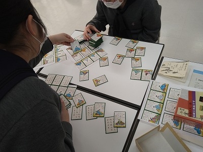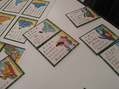 この日は、小倉百人一首を用いて、教科書に出てくる歌人をクローズアップし、オリジナルのルールを加えて、ゲームを楽しみました。