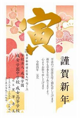 あけましておめでとうございます2022年がスタートしました。今年は寅年。「虎は千里を走る」と言われるように、昔から虎は活力や行動力の象徴とされてきました。生徒の皆さんが生きていくこれからの社会では、困難にぶち当たる場面が多くあることでしょう。そのような時こそ、前へ進むことができる活力や行動力を発揮できる人になってほしいと願っています。今年も素晴らしい一年になりますように・・・