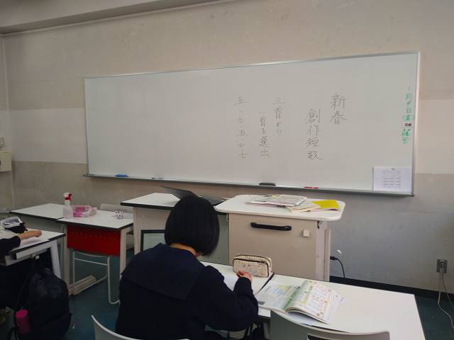 国語科が主導する全校生徒での取り組み「新春創作短歌」が始まりました。