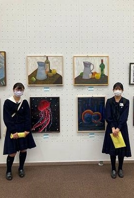 他校生徒の作品を参考にすることはもちろんですが、美術館という空間に飾られた自分の作品を見つめることもまた、部活動中に見るのとは違った気づきを得る貴重な機会となるようです。