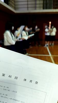 いよいよ、今週末は体育祭です。予行練習、本番に向けて体育委員や生徒会のメンバーが打ち合わせ中です。みんな真剣な表情で、しおりにメモを書き込んだり、必要な道具の確認をしたりしています。 本校の体育祭は、種目選びやルール作り…