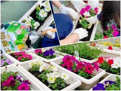 昨年度から成女で続いているお花プロジェクト。生徒教職員をはじめ、学校説明会に来た受験生や保護者の皆さんが明るい気持ちになれるよう、季節の花を植えてお世話をしています。今年度最初は、ニチニチソウとペチュニアを植え替えました…
