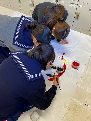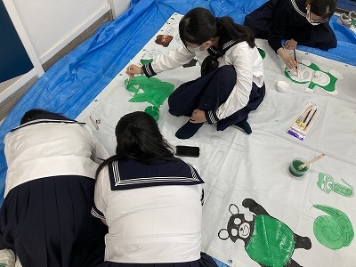 体育祭に向けて、高1クラスでは応援団旗を作成中です!デザインの方向性が決まったため、早速下書き・色塗りを進めていきます。中央の大きな地球儀の周りには、学年カラーである緑色のキャラクターがたくさん描かれ、どんどん賑やかにな…