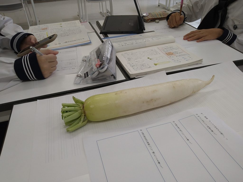 中学国語の授業は、『ダイコンは大きな根?』の読解に入りました。この文章では、「大根」をテーマに、それぞれの器官の働きが詳しく述べられています。身近な野菜の「大根」ですが、実はじっくりと眺めた経験はないのでは!?ということ…