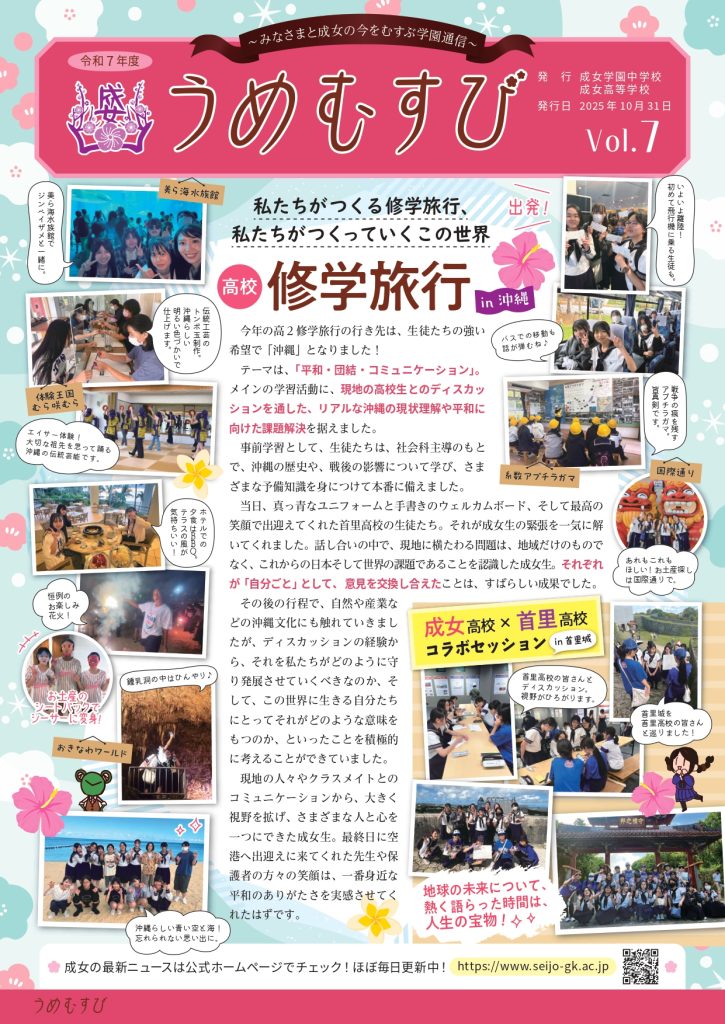 成女の広報誌「うめむすび」 成女の広報誌「うめむすび」。 Vol.7は、高2の沖縄修学旅行や生徒会選挙、花王のサイエンスプログラムを特集しています。 生徒自身が物事を自主的に考え、行事を企画・運営していく本…