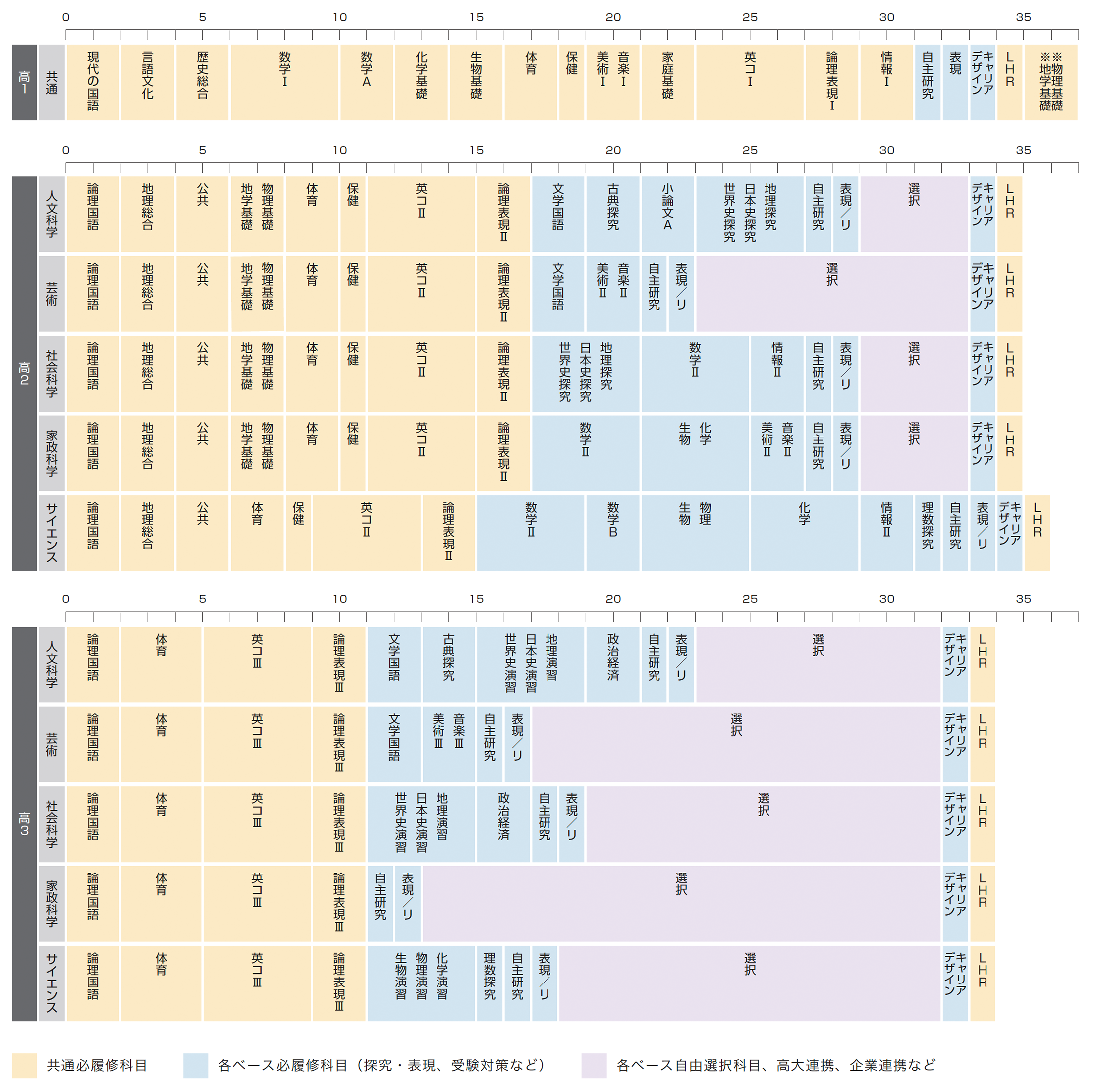 必履修科目/ベース別の必履修科目/ベース別の自由選択科目に