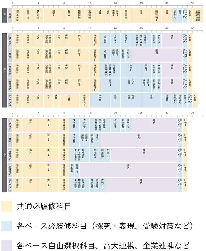理科:サイエンスベースは、物化生地を最大4科目履修可能